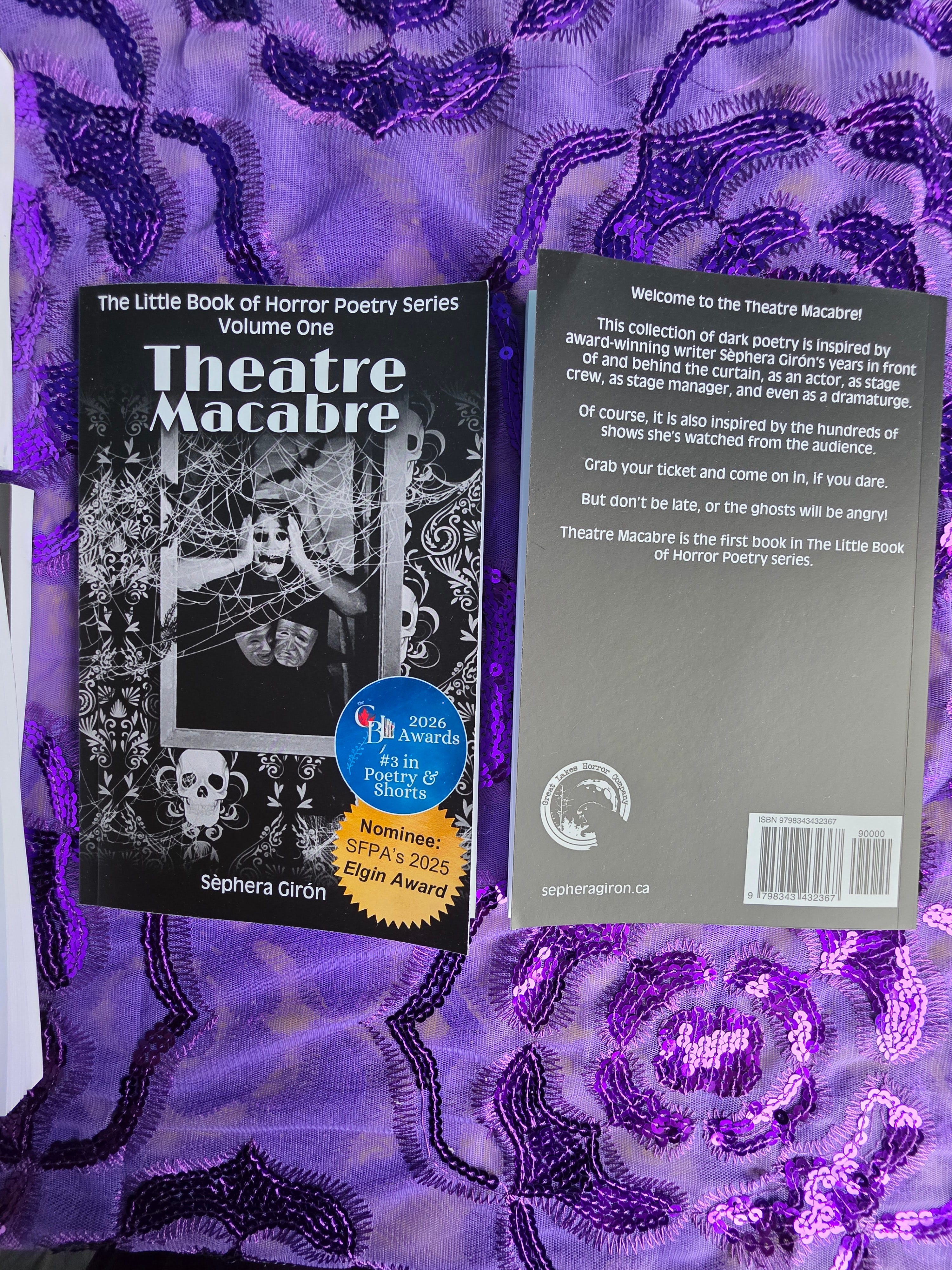 My publisher, The Great Lakes Horror Company, has released a new version of Theatre Macabre with my award nomination and my award win on the cover!
